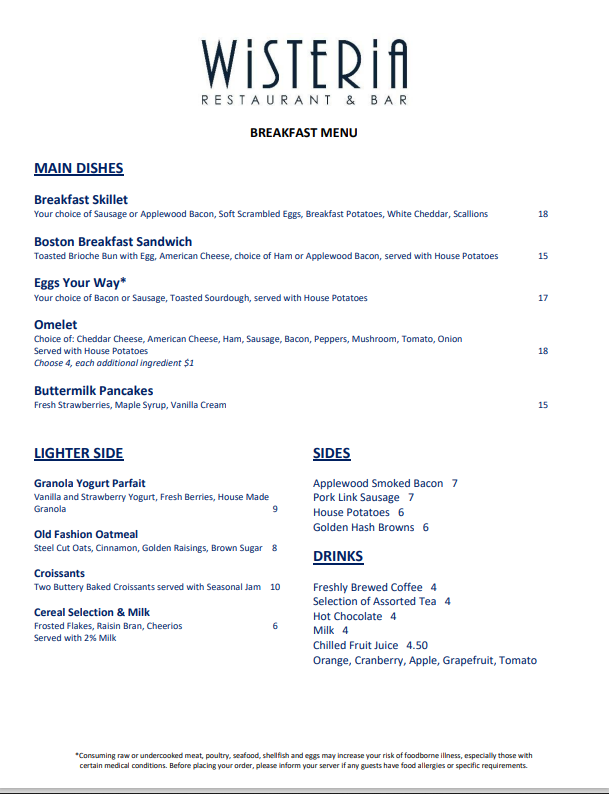Welcome to Wisteria Restaurant and Bar, located at 821 Washington St in Boston, MA. This delightful establishment offers a menu that combines comfort and culinary creativity, perfect for any occasion.